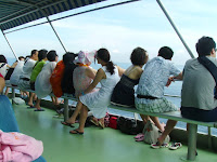 Tiba di Pontoon, penumpang dipersilakan turun dan dibagi aktivitasnya; ada yang langsung naik perahu kecil untuk ke Nusa Penida, ada yang bermain-main dengan fasilitas olah raga air yang ada. Anda bisa main banana boat, snorkling, fish feeding, atau meluncur dari water slide langsung ke laut! Sensasinya, wooww!! :D Semua peralatan disediakan disini. Buat yang mau berjemur atau pijat refleksi juga bisa. O,iya..disini disediakan makan siang secara prasmanan. Wuiihh....makanannya banyak dan enak2! hehe..cuma ya itu, harus antri. Parahnya kalau antri bareng orang yg nggak tau tata tertib antri alias main serobot, bikin esmosi jiwa!:p